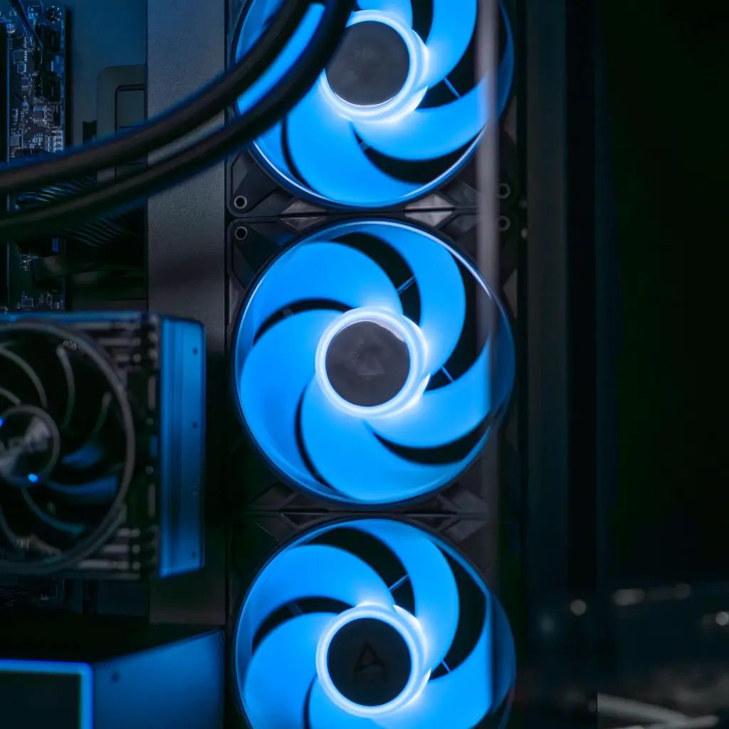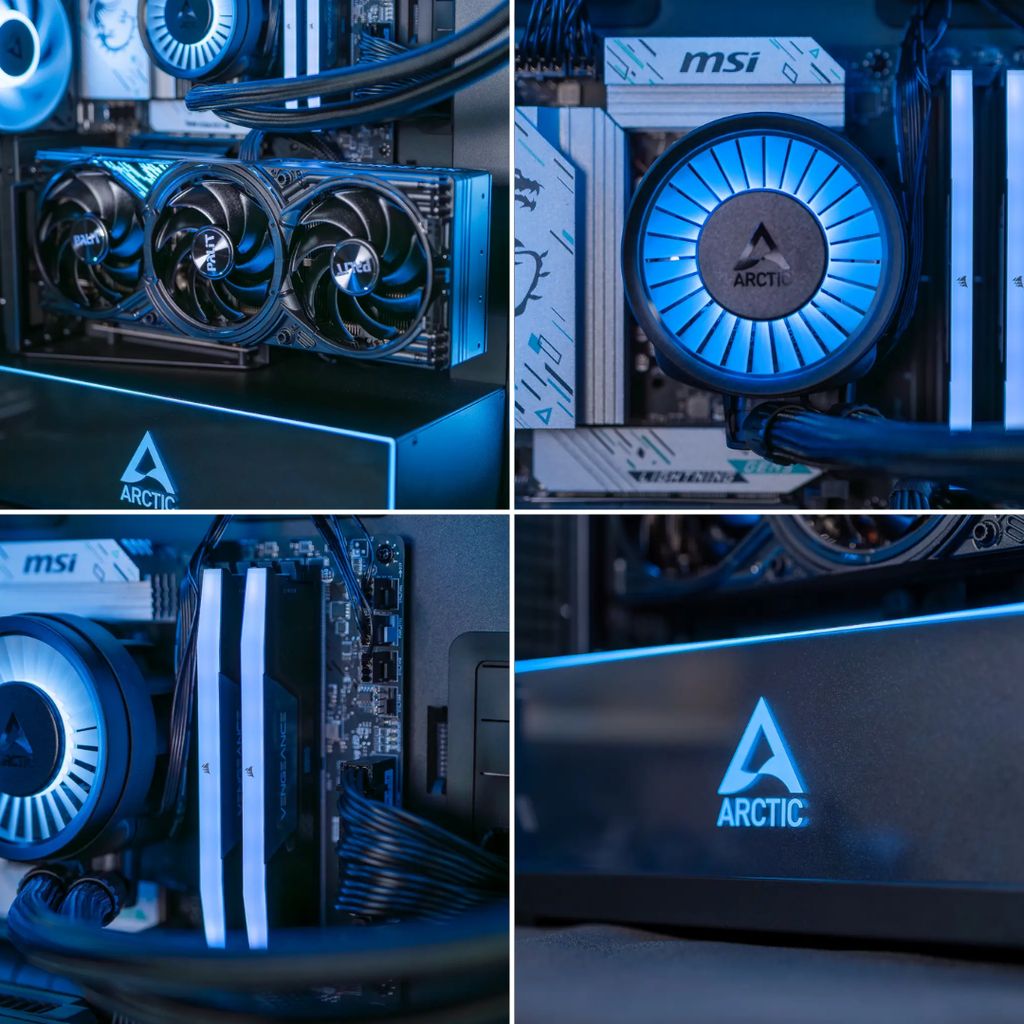 •Gehäuse: Weißer Tower mit fortschrittlicher Flüssigkeitskühlung, minimalistischem Design und eisblauer RGB-Hintergrundbeleuchtung
